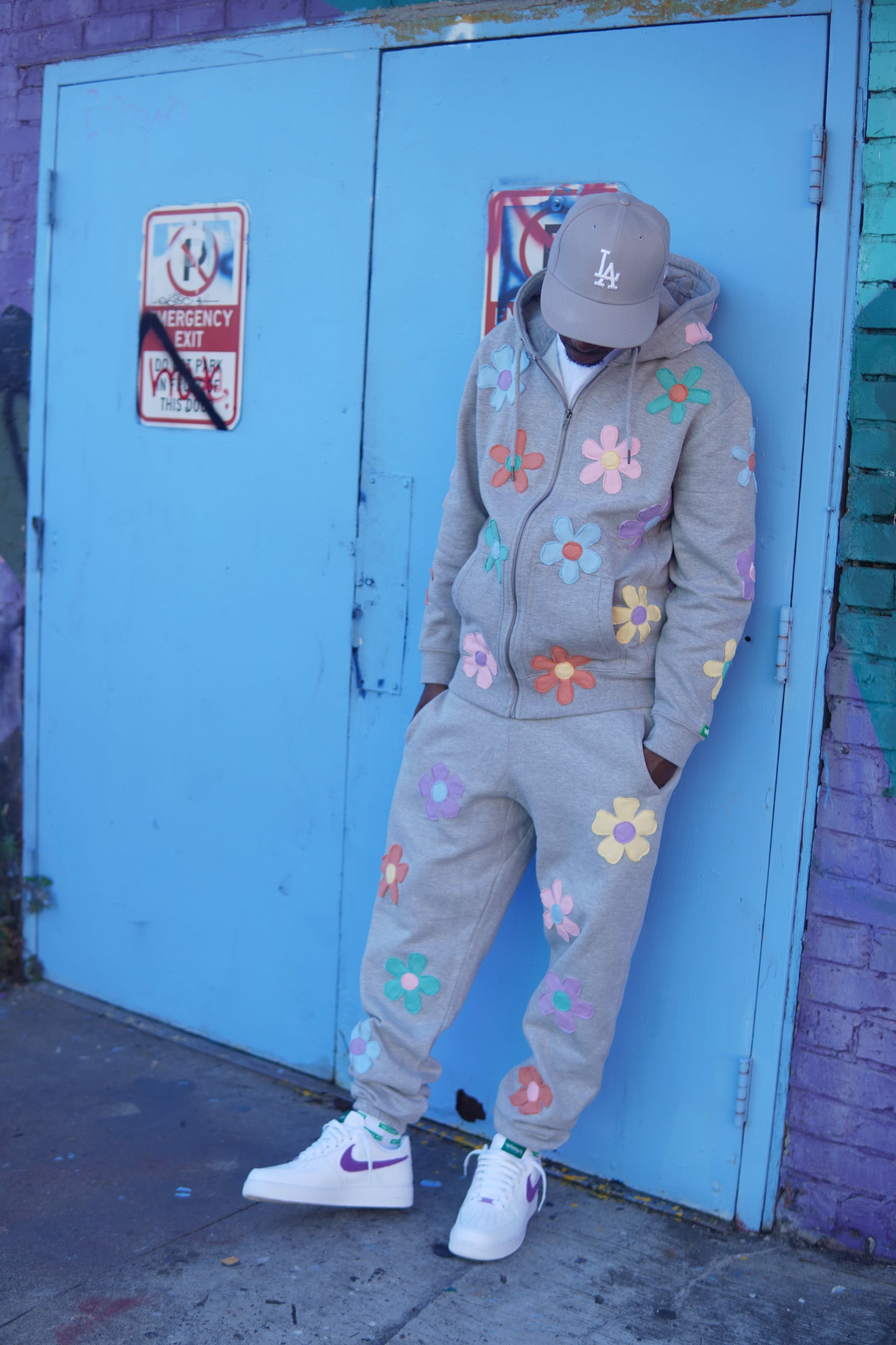Grey Pastel Floral Lyfestyle Sweatsuit